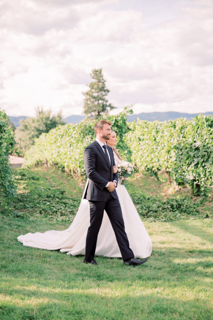 Leslie and Brad tied the knot on August 8, in a Fitzpatrick Winery wedding in Peachland, BC. The two first met online and have spent years adventuring around the world together, so it only made sense that their wedding felt like another chapter in their story of adventures — both families (and the couple themselves!) made the trip from Ontario to celebrate in the heart of the Okanagan.